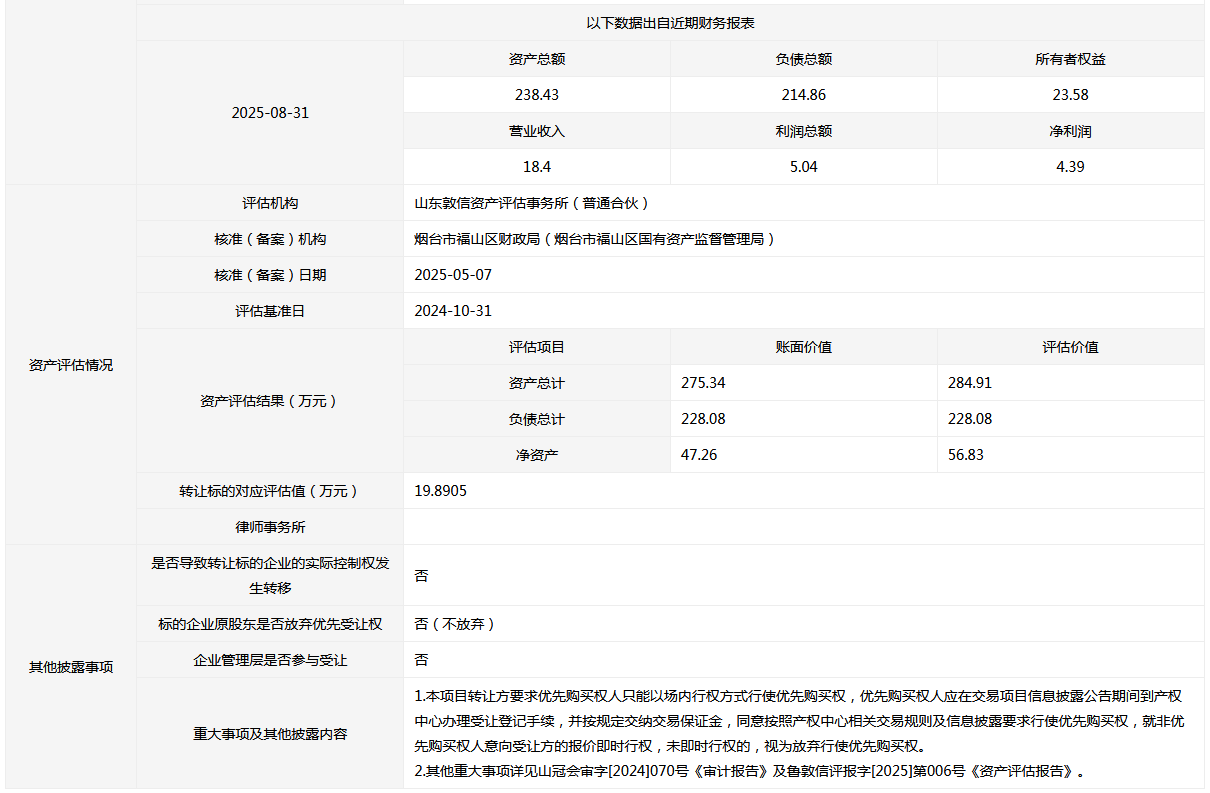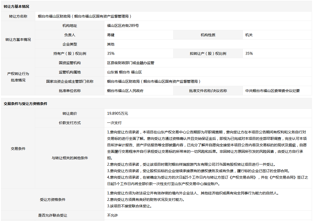 轉讓方: 煙臺市福山區(qū)財政局(煙臺市福山區(qū)國有資產(chǎn)監(jiān)督管理局)