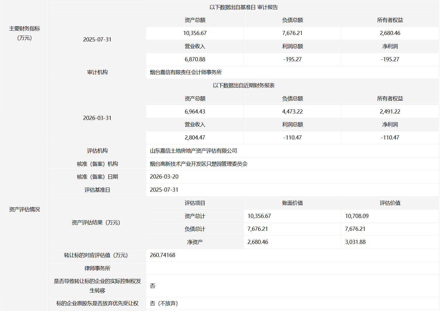 轉(zhuǎn)讓方:煙臺市楚順投資有限公司