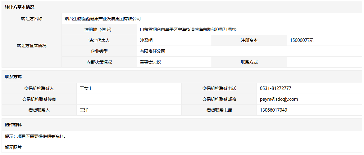 轉讓方:煙臺生物醫(yī)藥健康產(chǎn)業(yè)發(fā)展集團有限公司