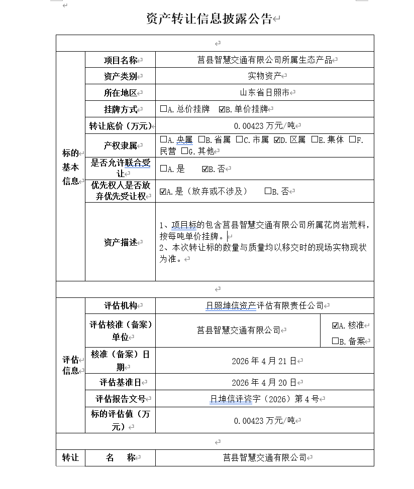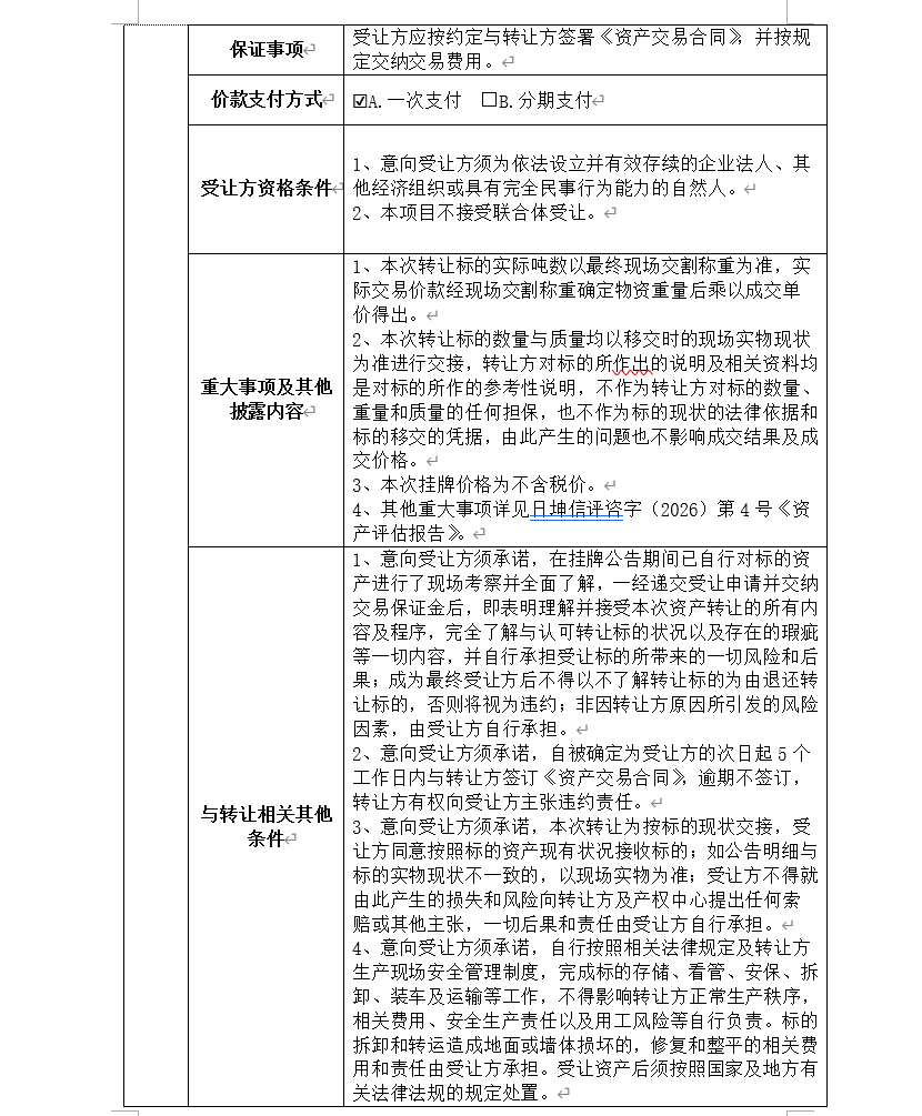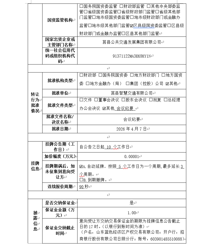 掛牌起止日期:2026年4月27日-2026年5月12日
