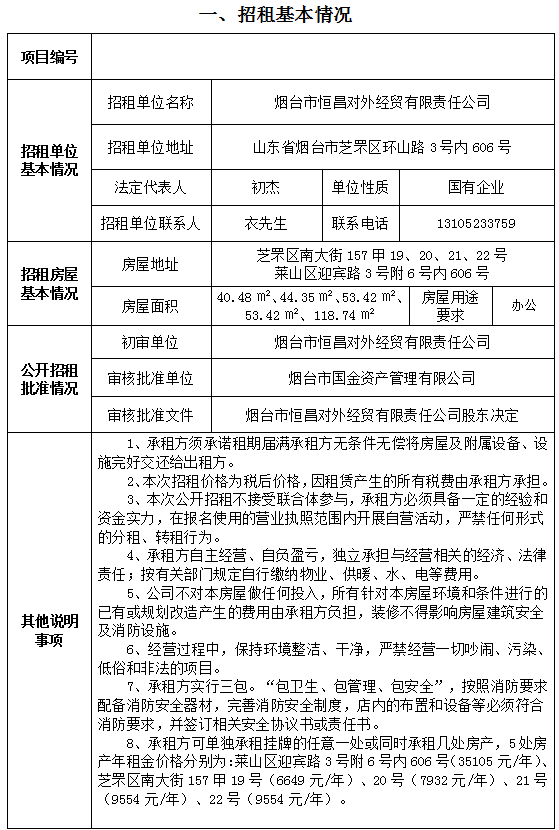 煙臺市恒昌對外經貿有限責任公司5處非住宅房產